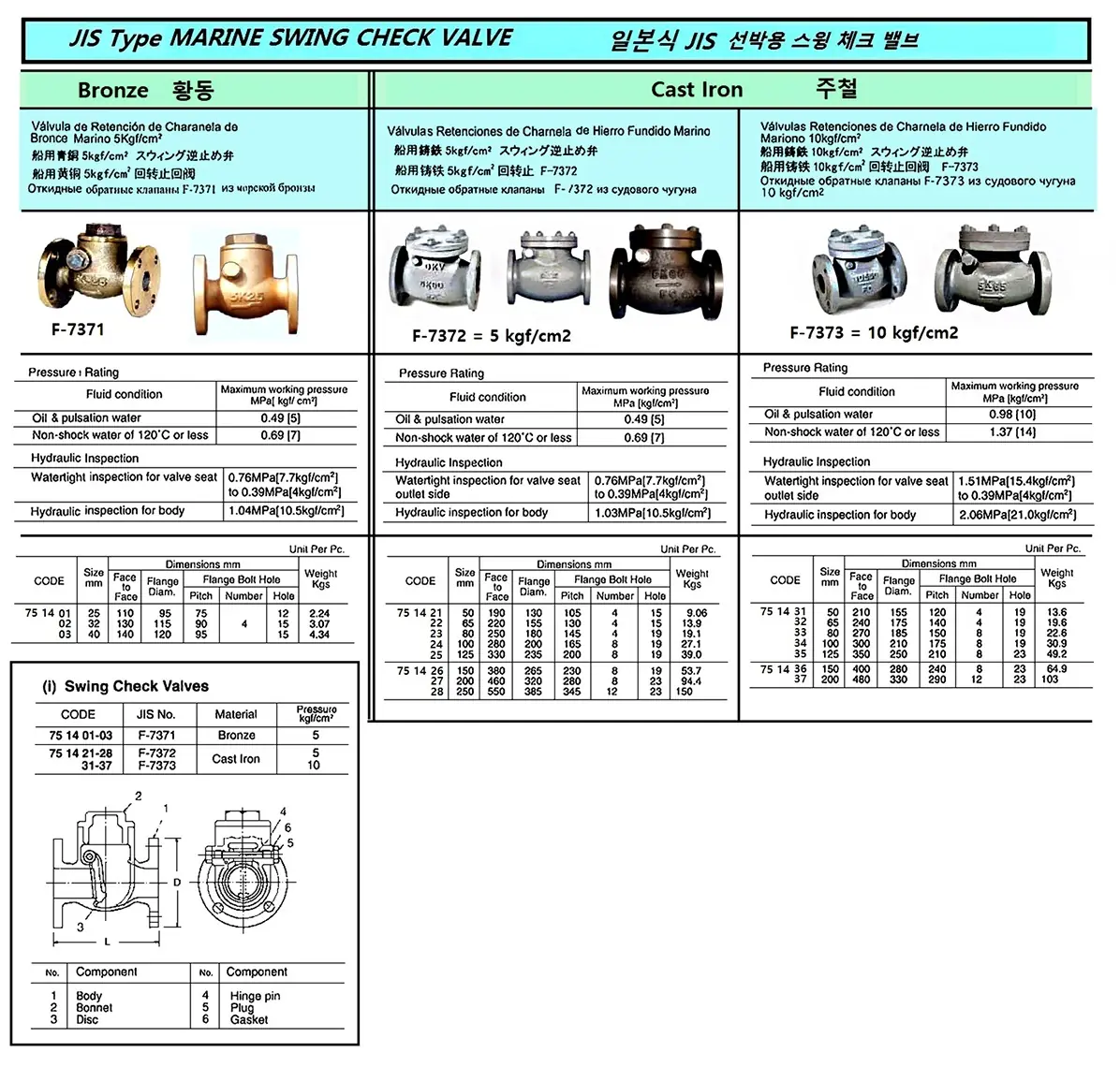 | Description | MARINE CAST IRON SWING CHECK VALVE, FLANGE END, JIS F7372, 5KGF/CM2, 200 MM |