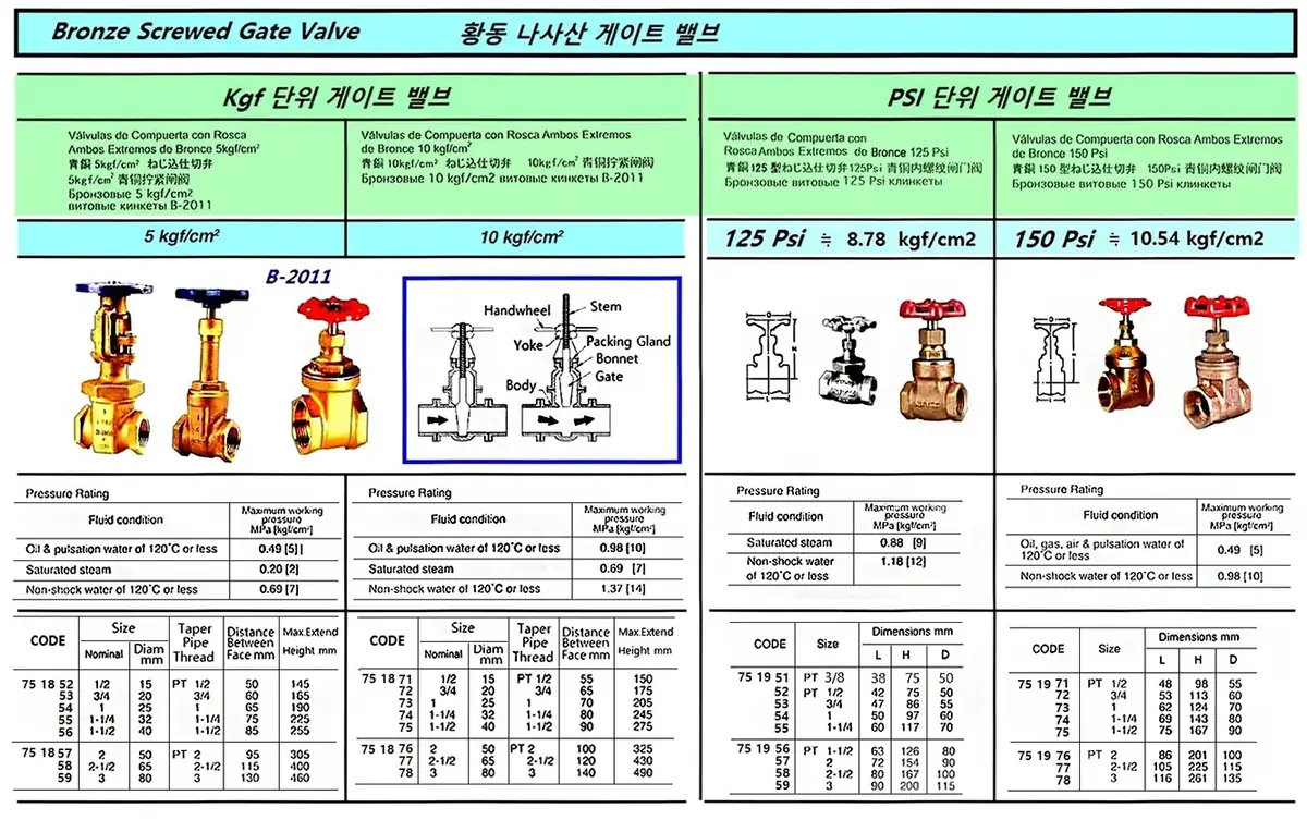 | Description | BRONZE SCREWED GATE VALVE, JIS B-2011, 10KGF/CM2, 2-1/2" |