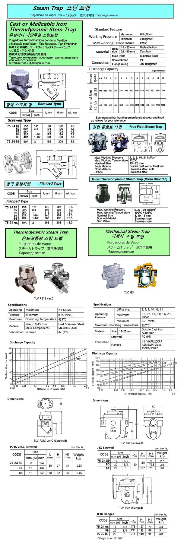 | Description | MALLEABLE IRON THERMODYNAMIC STEAM TRAP, A3N FLANGED, 25 A |