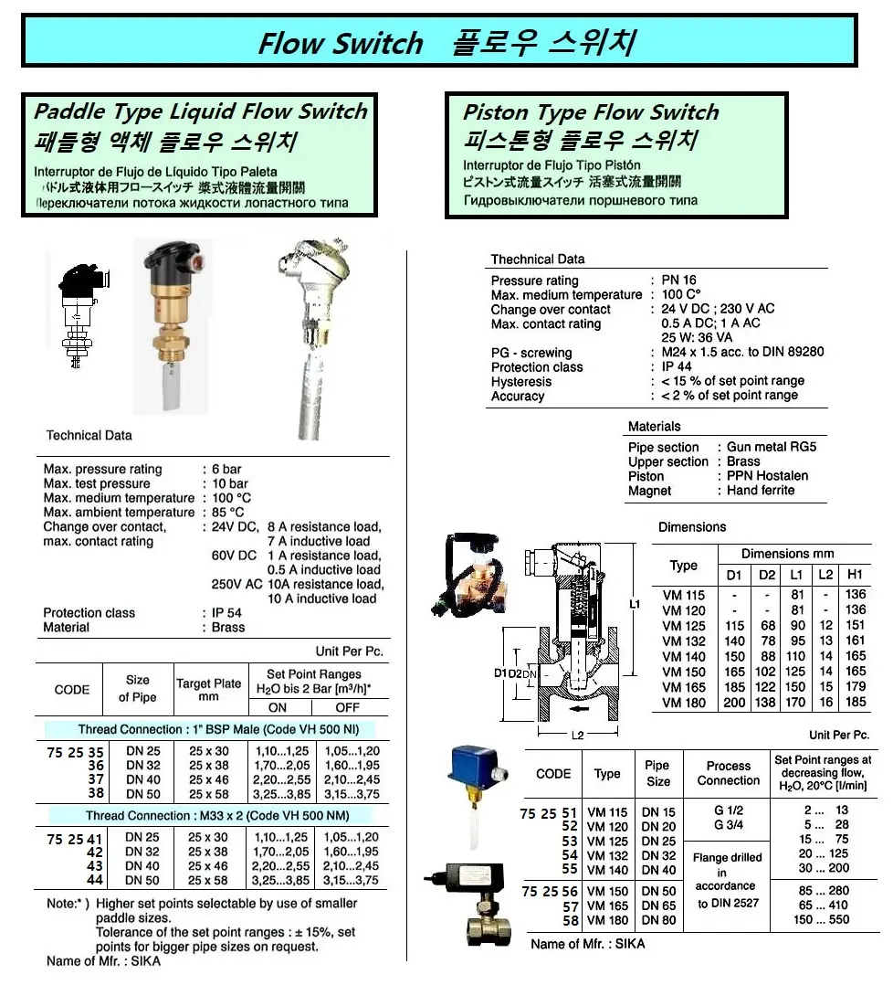 | Description | PADDLE TY LIQUID FLOW SWITCHES, THREAD CONNECTION M33 x 2, VH500NM, DN 32, SIKA |