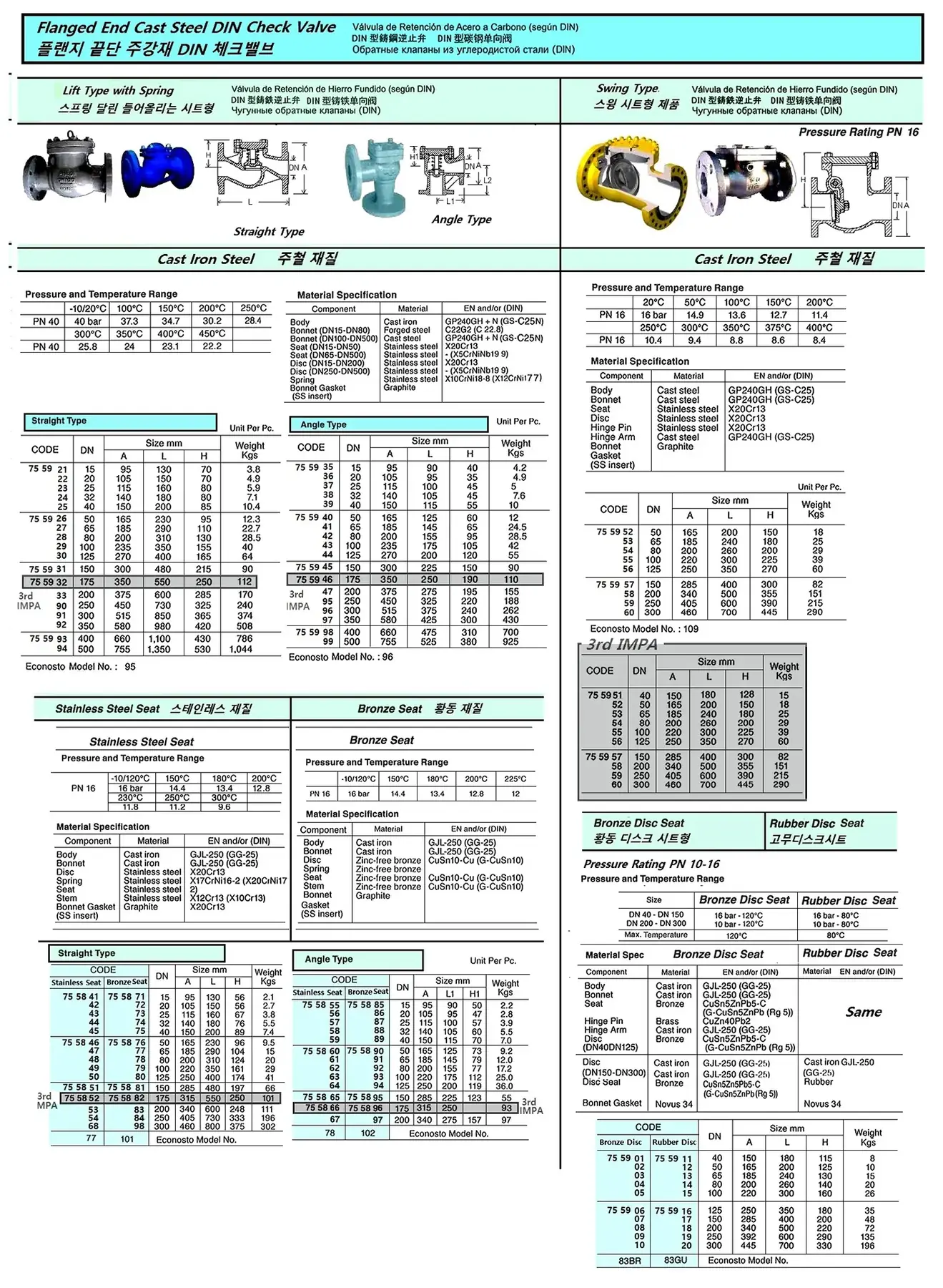 | Description | LIFT CHECK VALVE (DIN), CAST IRON, FLANGED, ST. STEEL SEAT, STRAIGHT, ECONOSTO 77 SIZE DN 65 |