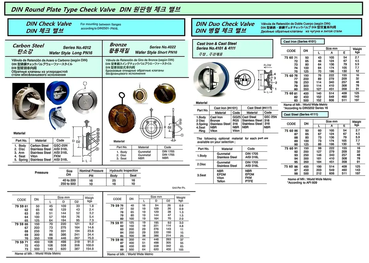 | Description | CARBON STEEL CHECK VALVE, WATER STYLE LONG, WORLD WIDE METRIC 4012 DN 100 |