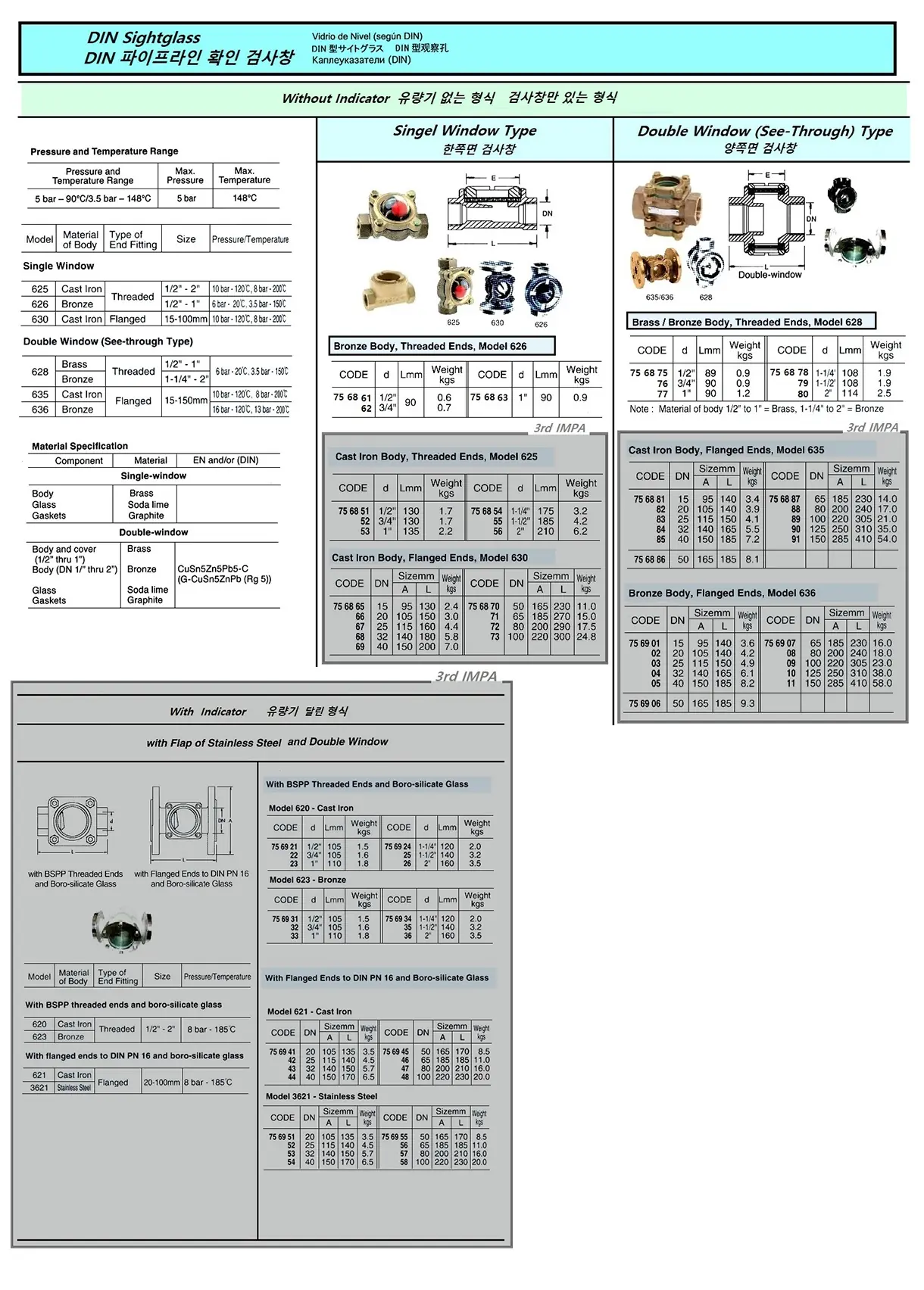 | Description | Old Model, SIGHT GLASS WITH INDICATOR (DIN), CAST IRON BODY, FLANGED END, DOUBLE WINDOW WITH FLAP, MODEL 621, SIZE DN 32 |