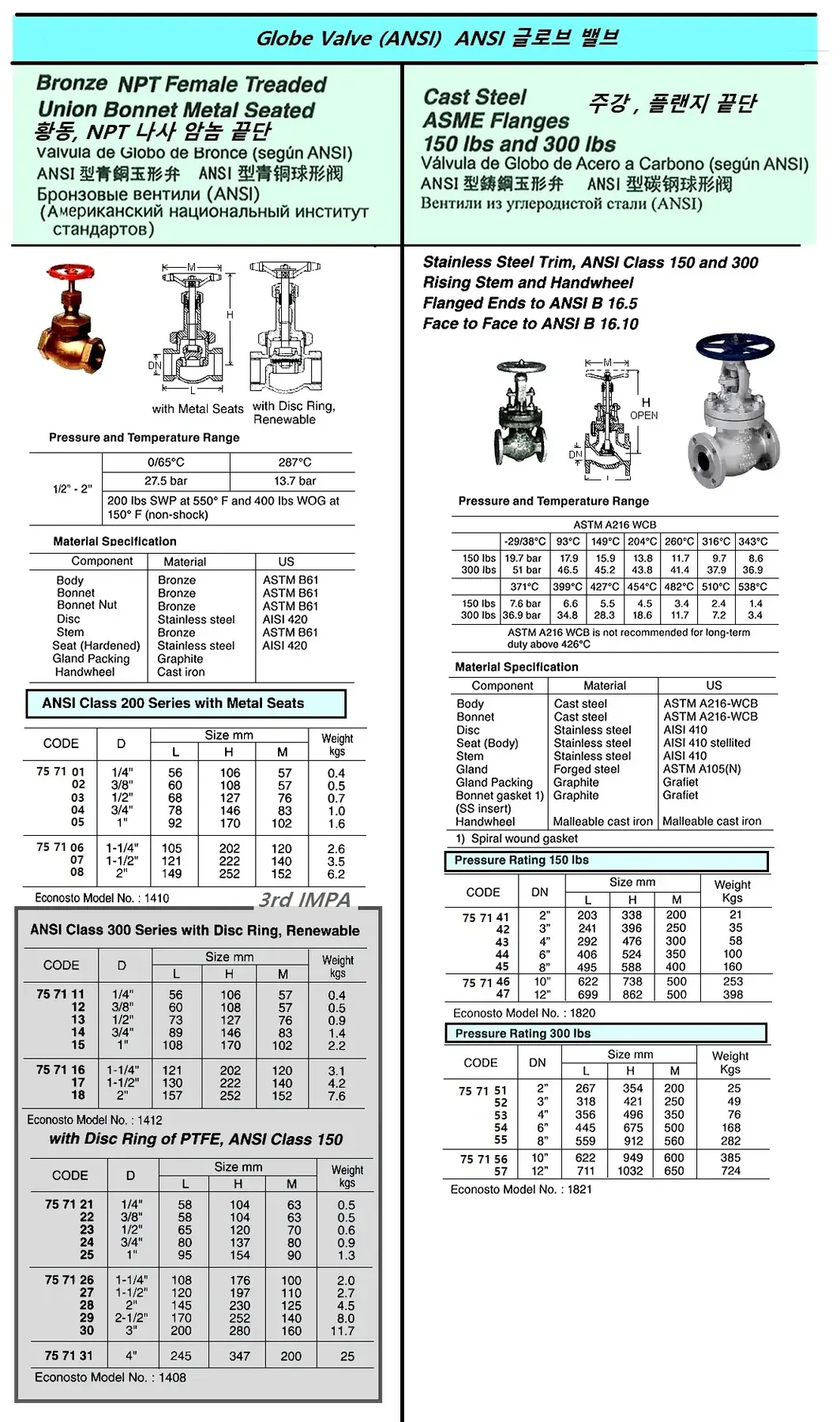 | Description | GLOBE VALVE (ANSI), BRONZE, NPT THREAD ENDS, UNION BONNET, METAL SEATS, ECONOSTO 1410, D 2" |