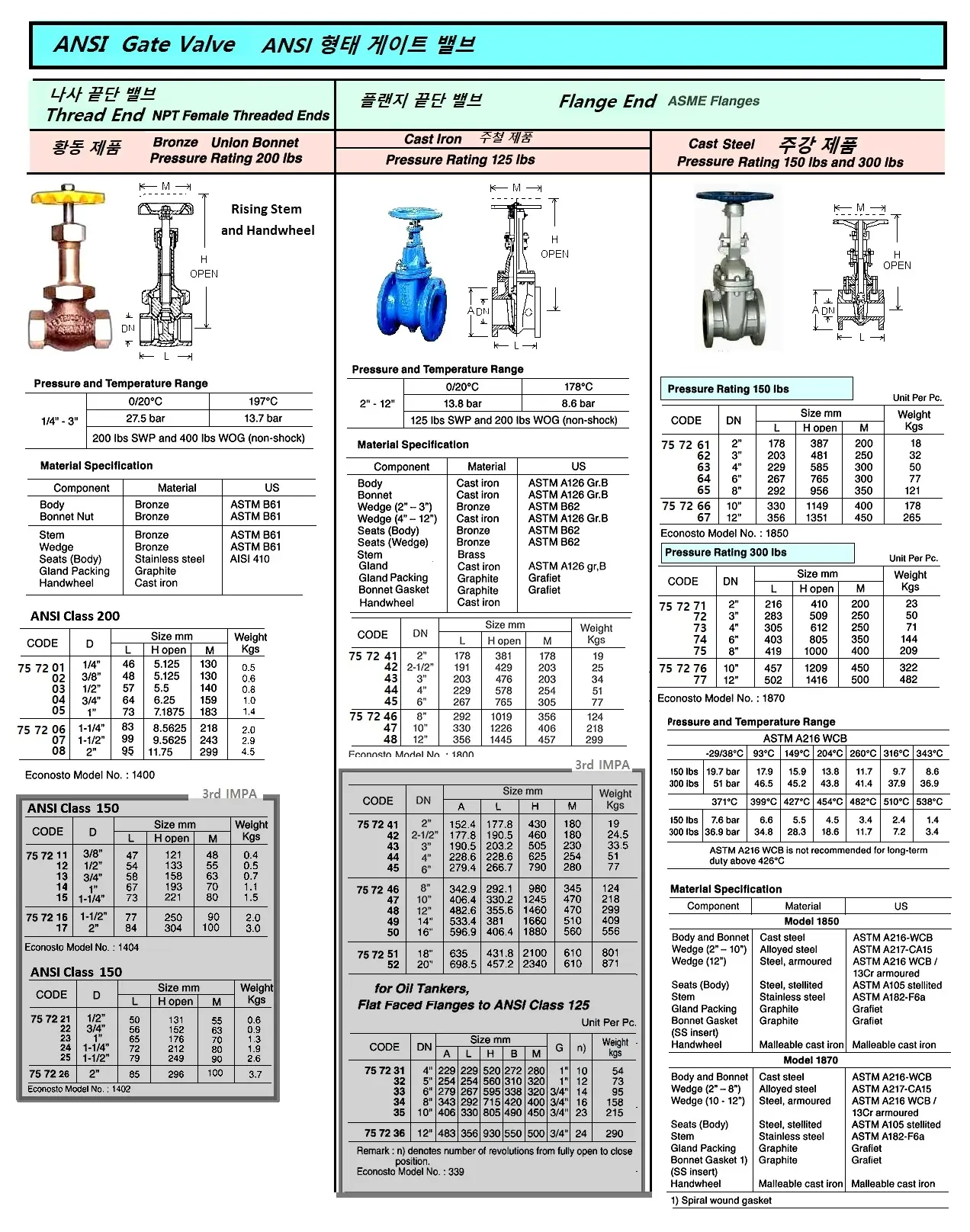 | Description | Old Model, GATE VALVE (ANSI), BRONZE, NPT FEMALE THREAD END, UNION BONNET,150 LBS, SIZE DN 1-1/4" |