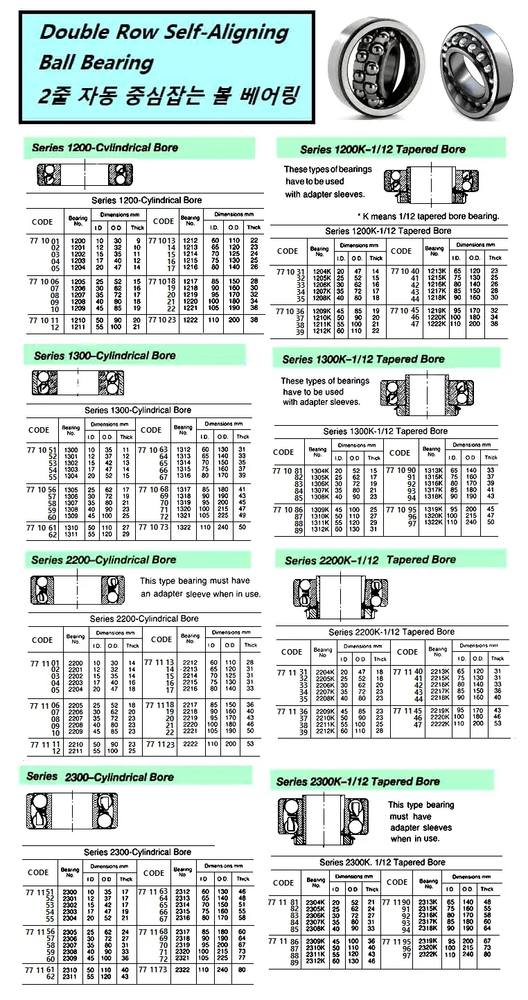 | Description | DOUBLE ROW SELF-ALIGNING BALL BEARING, 1/12 TAPERED BORE TY, NO.2212 K |