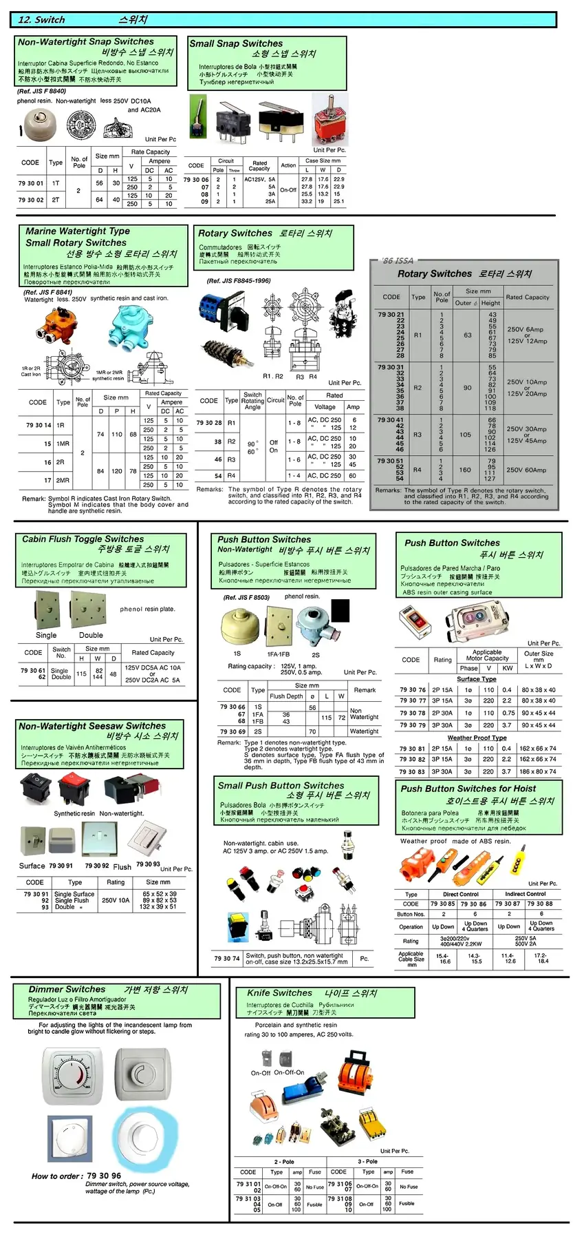 | Description | ROTARY SWITCH, TYPE #R3 6-POLE |