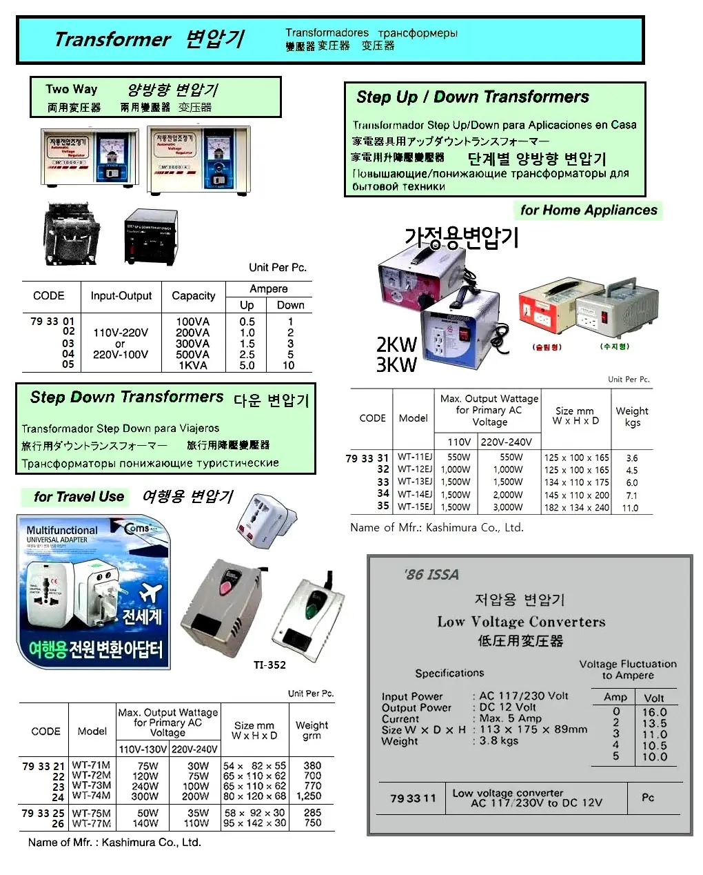 | Description | STEP DOWN TRANSFORMER FOR TRAVEL USE, WT-72M, KASHIMURA CO.LTD |