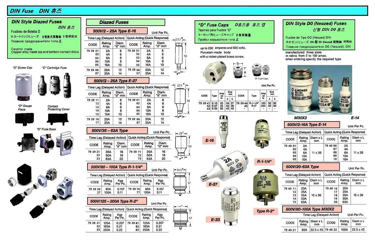 | Description | DIN STYLE DIAZED FUSE, E-16, QUICK ACTING, AC500V, 20 A |
