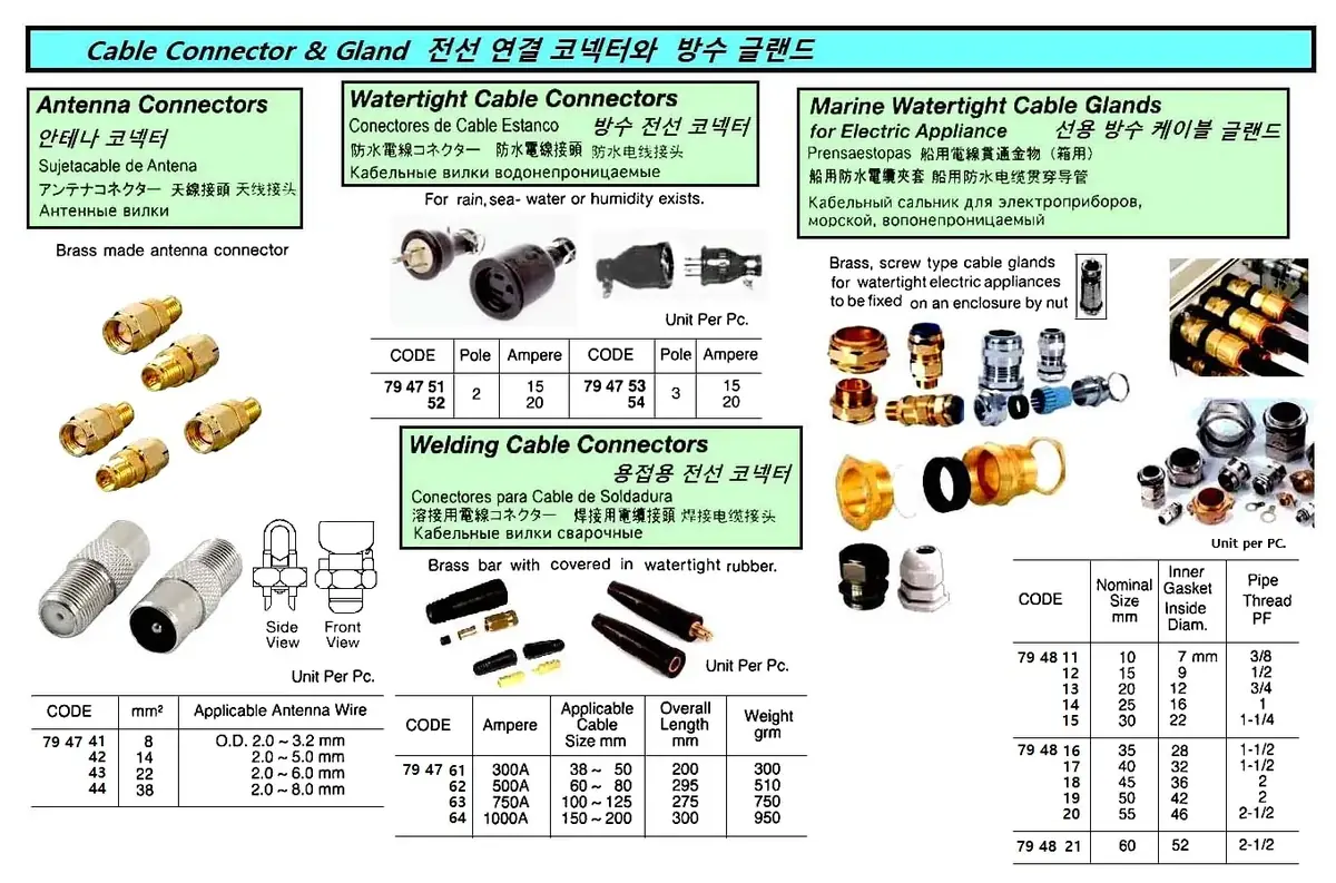 | Description | CABLE CONNECTOR, WATERTIGHT 3-POLE 20 A |