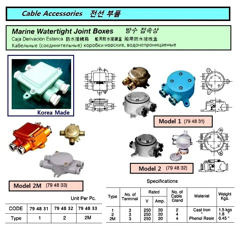 | Description | JOINT BOX, WATERTIGHT PHENOL RESIN TYPE 2M 20 AMP 3-P 4-GLANDS |