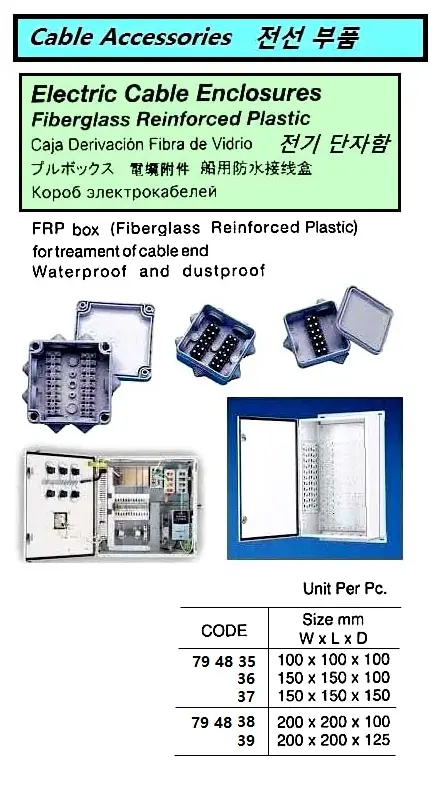 | Description | ELECTRIC CABLE ENCLOSURE, FIBERGLASS REINFORCED PLASTIC, 200x200x125 MM |