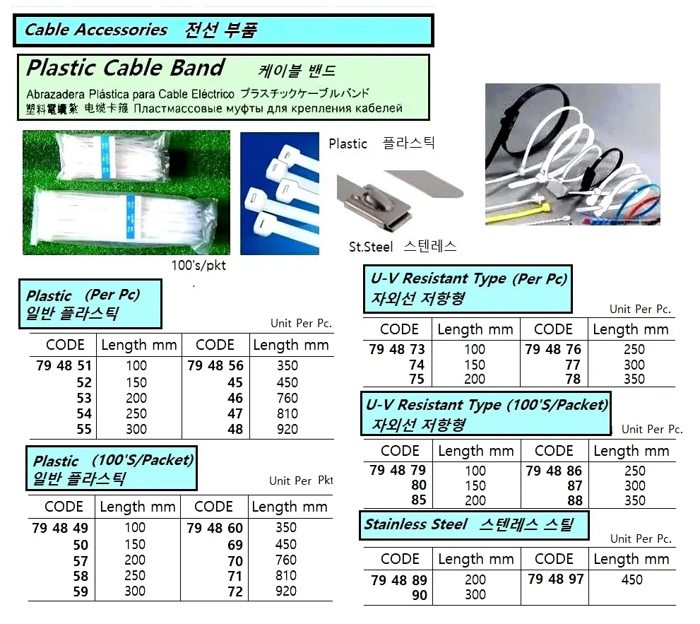 | Description | CABLE BAND (CABLE TIE), ULTRA-VIOLT RESISTANT TYPE 250 MM, 100'S/PKT |