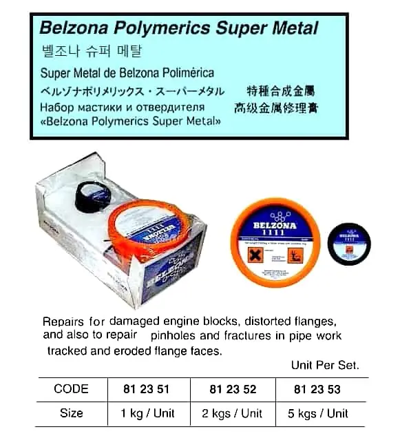 | Description | BELZONA POLYMERICS SUPER METAL WITH HARDNER, 5 KG/UNIT |