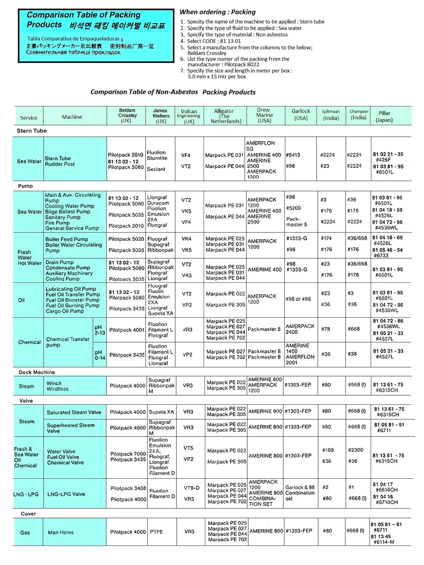 | Description | Comparison Table of Non-Asbestos Packing Products |