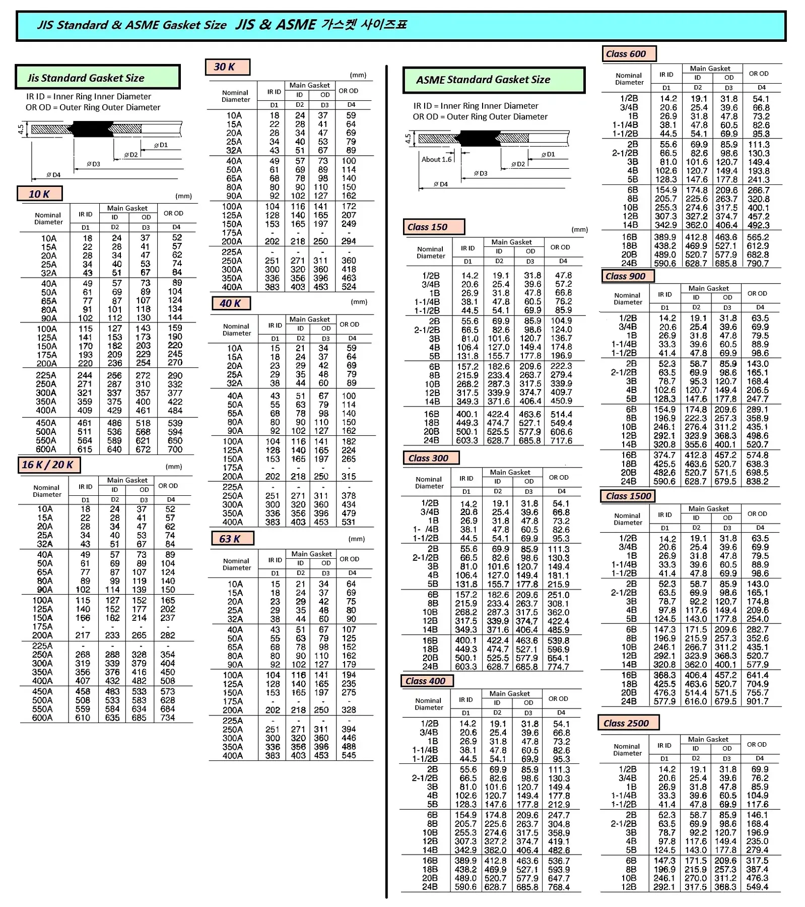 JIS Standard & ASME Gasket Size