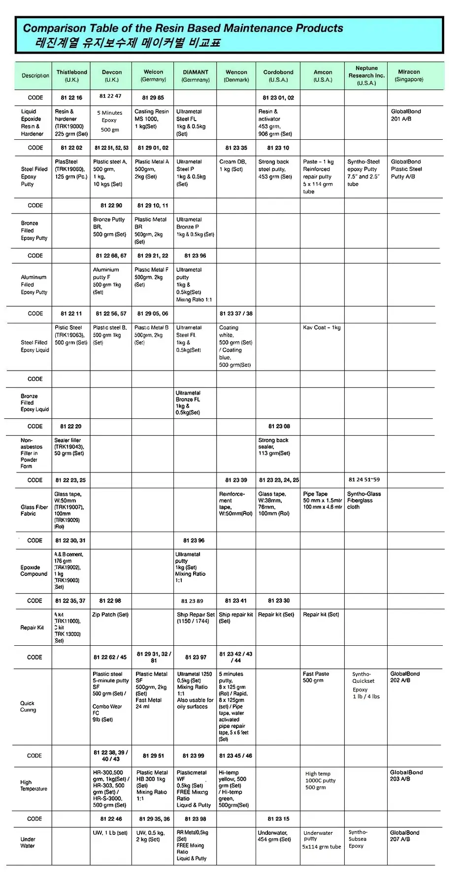 | Description | Comparision Table of the Resin Based Maintenance Products |