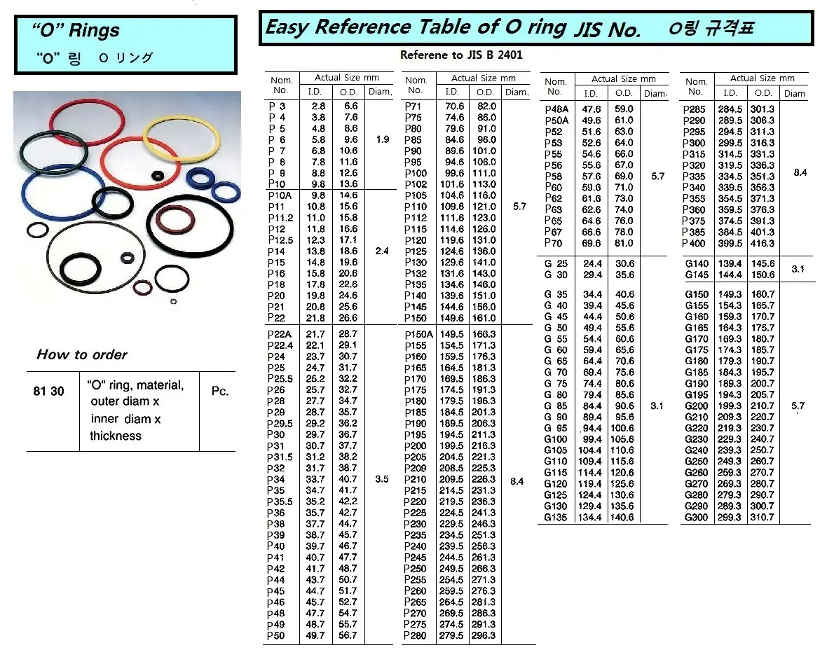 Easy Reference Table of O Ring JIS Number