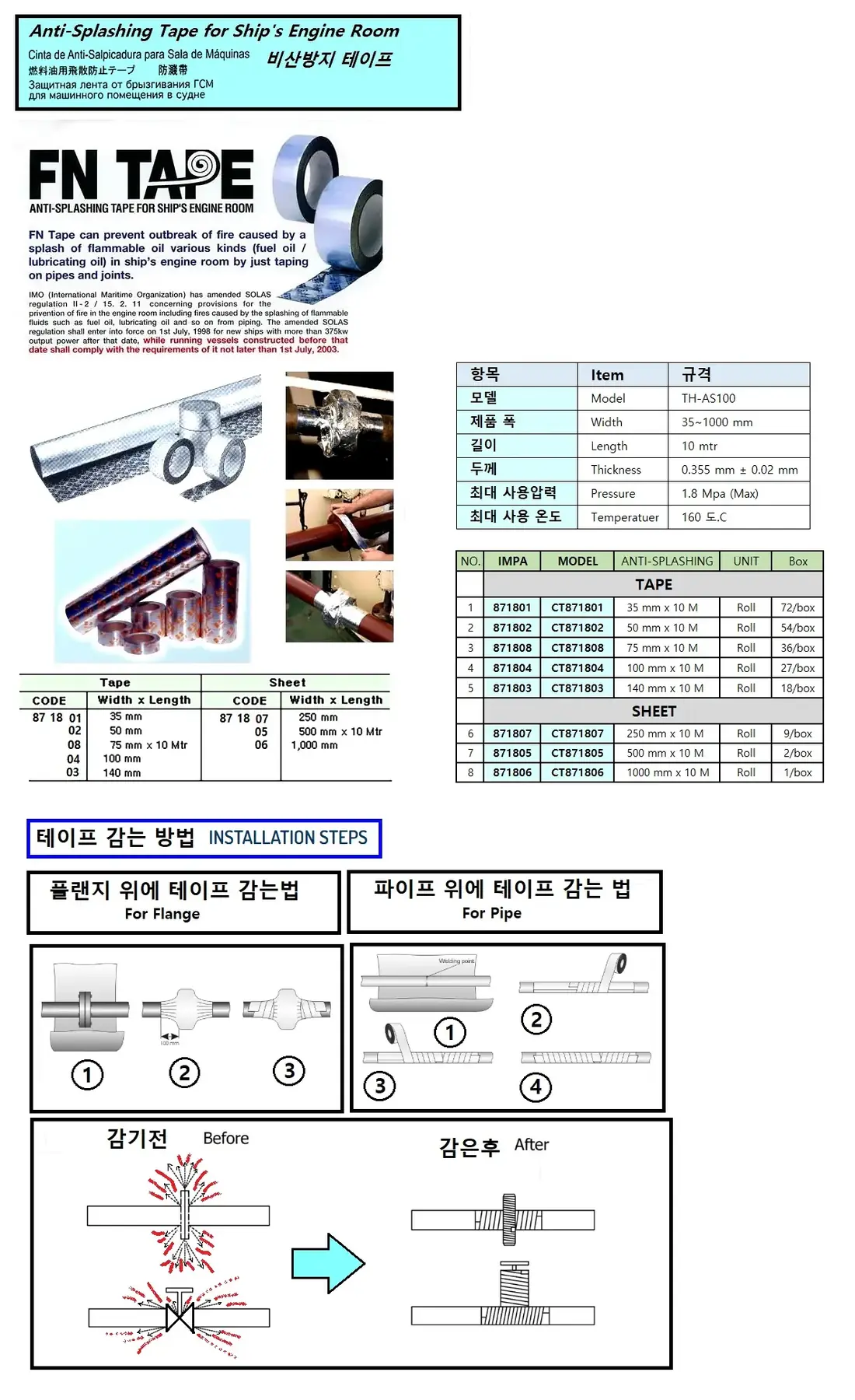 | Description | ANTI-SPLASHING TAPE FOR ENG. ROOM, 140 MM x 10 MTR |